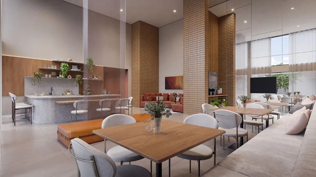 Espaço Fitness / Yoga / Espaço Gourmet / Churrasqueira / Sky Bar / Piscina / Lounge / Solarium / Sauna / Massagem / Coworking / Lavanderia / Delivery / Pet Place / Bicicletário ....